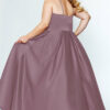 A chic and sleek dress in flamingo, ice blue, and lavender. With a fit and flare silhouette, the perfect choice for bold curves. Featuring satin straps, adjustable lace-up back, multi-dimensional sequins, a five-inch sweep train, horsehair hem, and a fully lined design.
